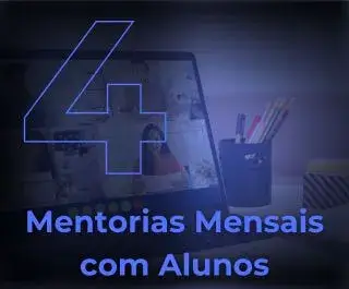 O suporte é direto comigo via WhatsApp para dúvidas rápidas, e a mentoria mensal é uma aula ao vivo para aprofundar técnicas e responder perguntas.